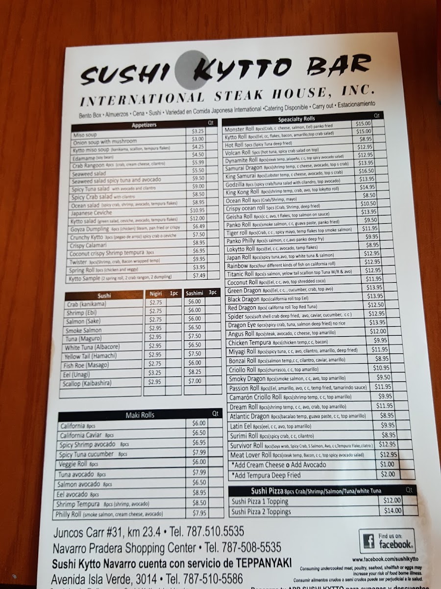 “ Awesome experience at Kytto Sushi Bar in Gurabo! Attentive staff, great menu and clean establishment. ”